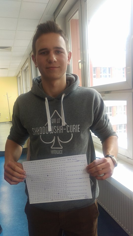 pan Marcel Ścierski z VIII LO w Katowicach zapisał bez błędu 1111 cyfr